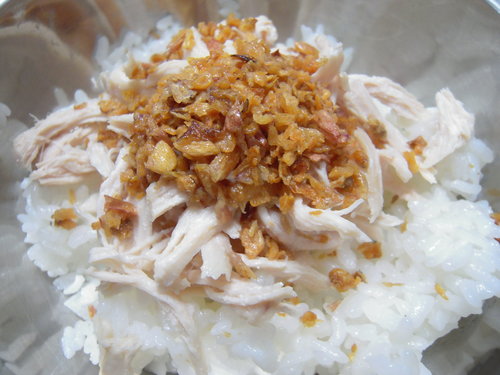 油蔥酥和煮雞胸肉的湯汁,這樣吃起來一點也不油,很清淡哦^^~